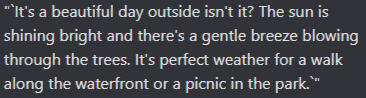 * This markdown normally highlights text in grey and changes the font for coding, but it's different for JAI. This only works in chats and changes the font of the text. Below are some comparisons: